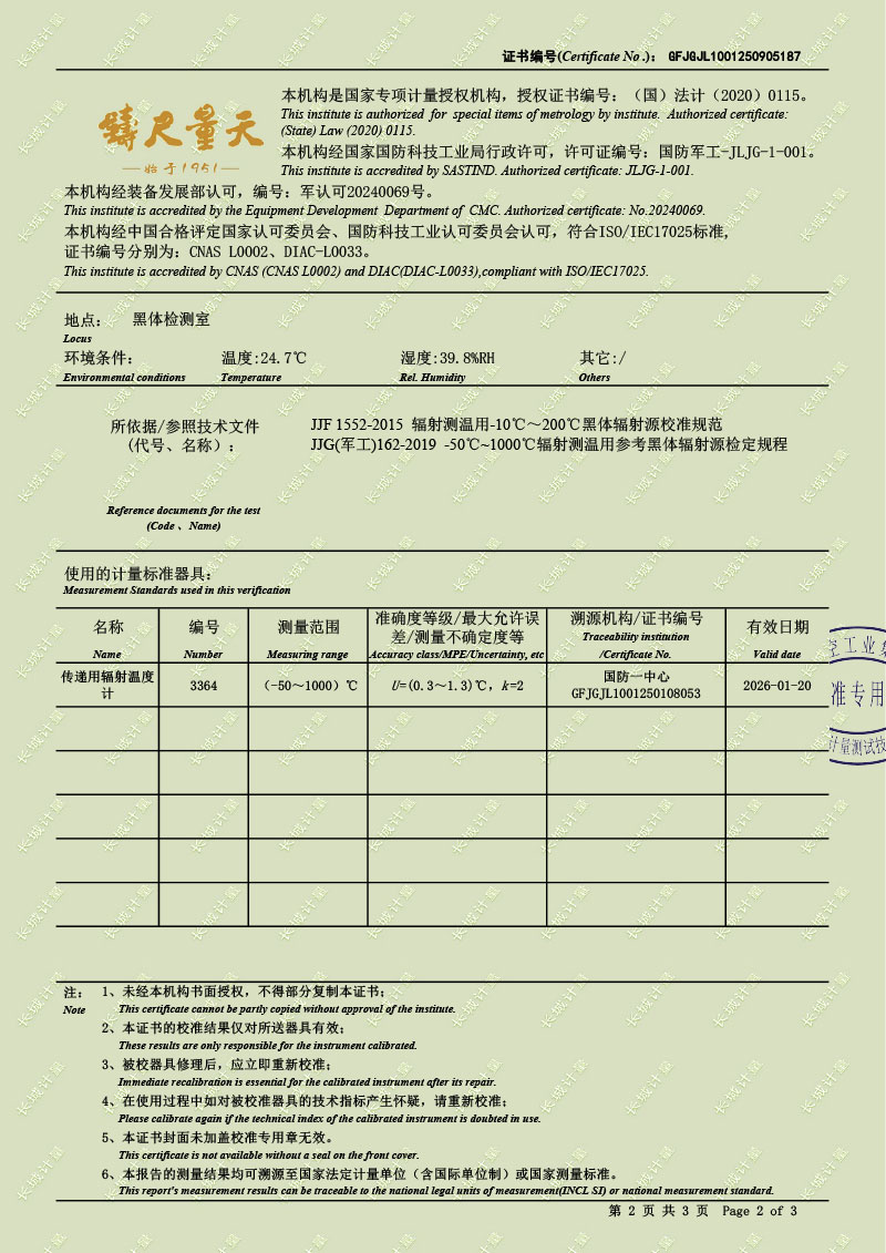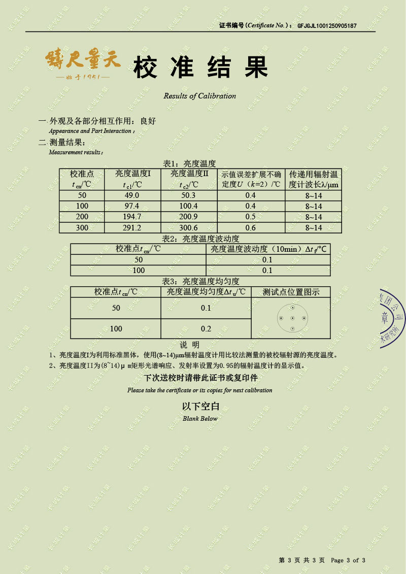 分體式面源黑體輻射源(室溫+5-300℃)校準(zhǔn)證書 2025-9-12 本文被閱讀 1294 次