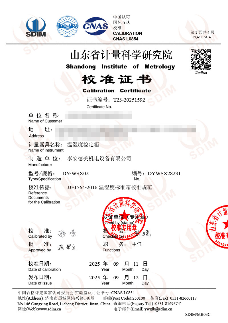 溫濕度檢定箱(-20-70℃)校準(zhǔn)證書 2025-9-18 本文被閱讀 1557 次