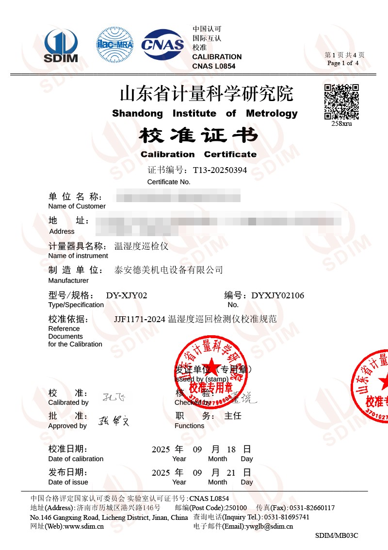 | 上一條:中溫干體爐(30-650℃)校準(zhǔn)證書(shū) | 下一條:便攜式干體爐(-30-150℃)校準(zhǔn)證書(shū) |