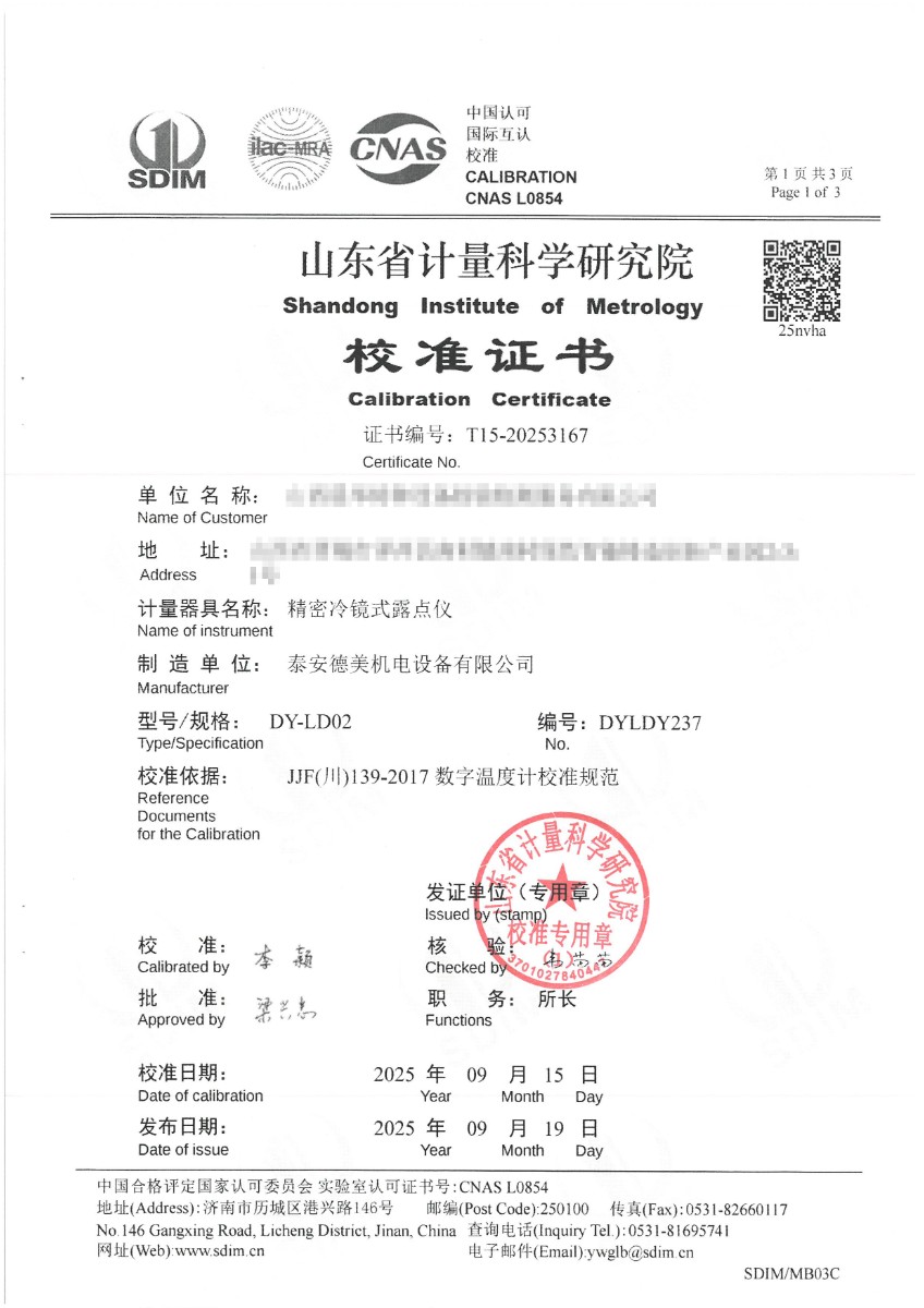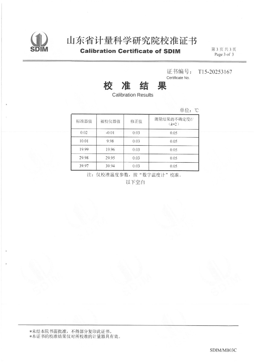 上一條:高精度數(shù)字溫度計(jì)(-20-100℃)校準(zhǔn)證書 | 下一條:便攜式干體爐(-30-150℃)校準(zhǔn)證書 |