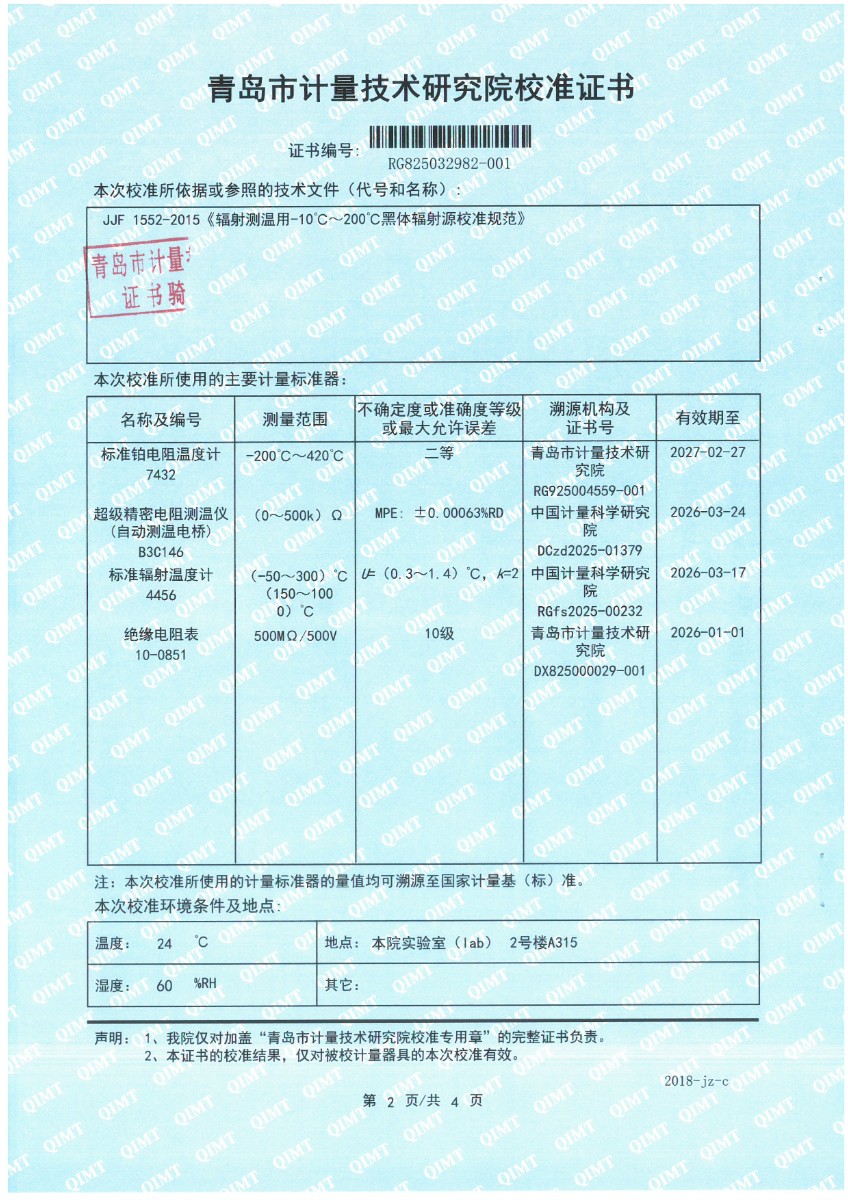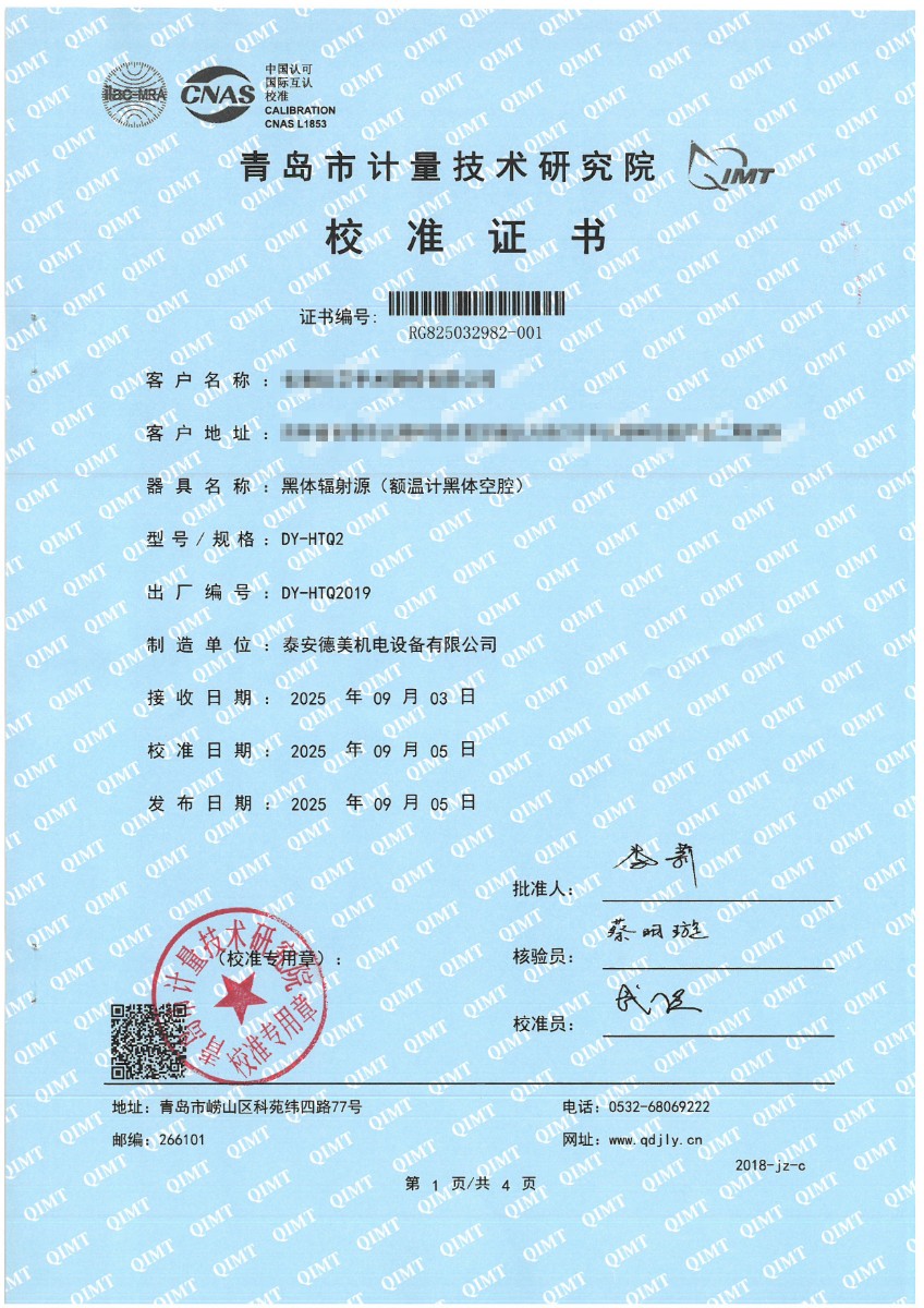 額溫計(jì)黑體空腔-校準(zhǔn)證書 2025-9-23 本文被閱讀 1350 次