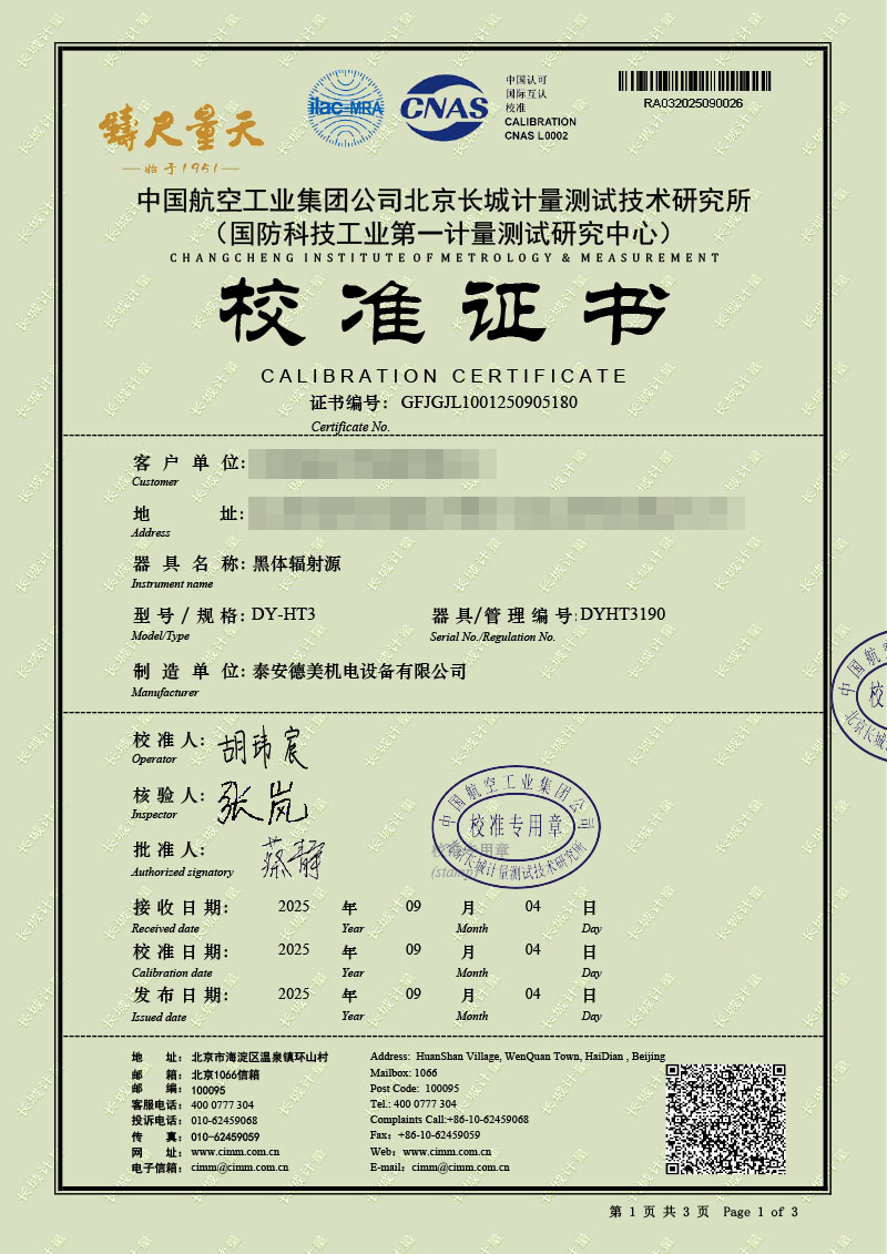| 上一條:溫濕度檢定箱(-20-70℃)校準(zhǔn)證書(shū) | 下一條:便攜式干體爐(-30-150℃)校準(zhǔn)證書(shū) |